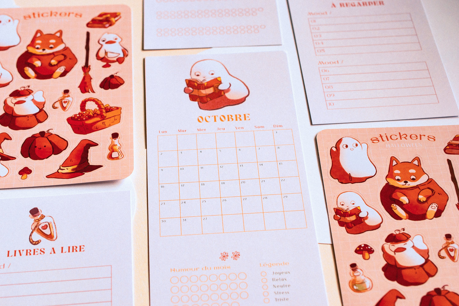 Receive a calendar card, an introspection card, a monthly activity card and reading/film/series lists, as well as stickers.