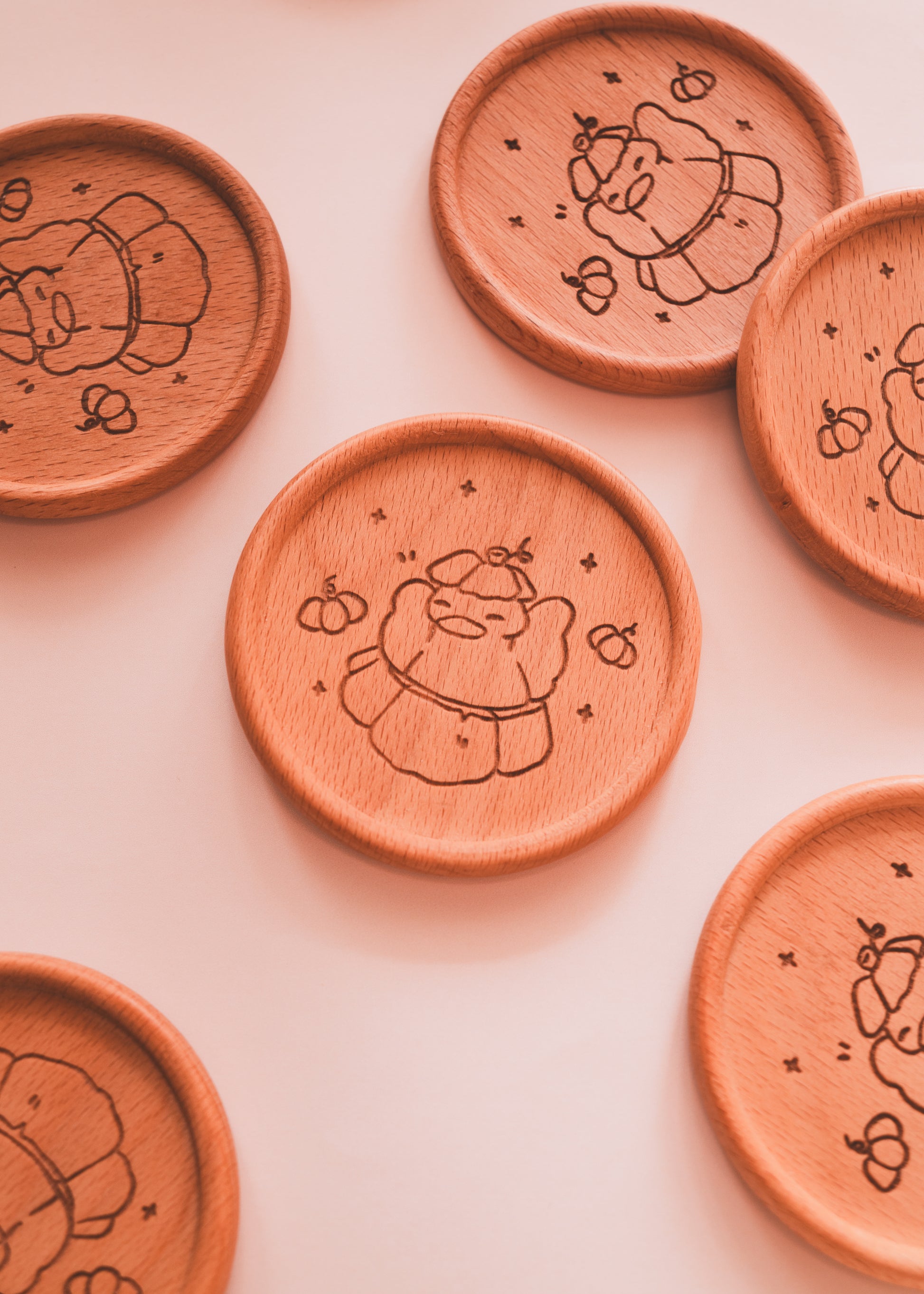 Dessous de verre en bois bamboo, gravé, 9cm.