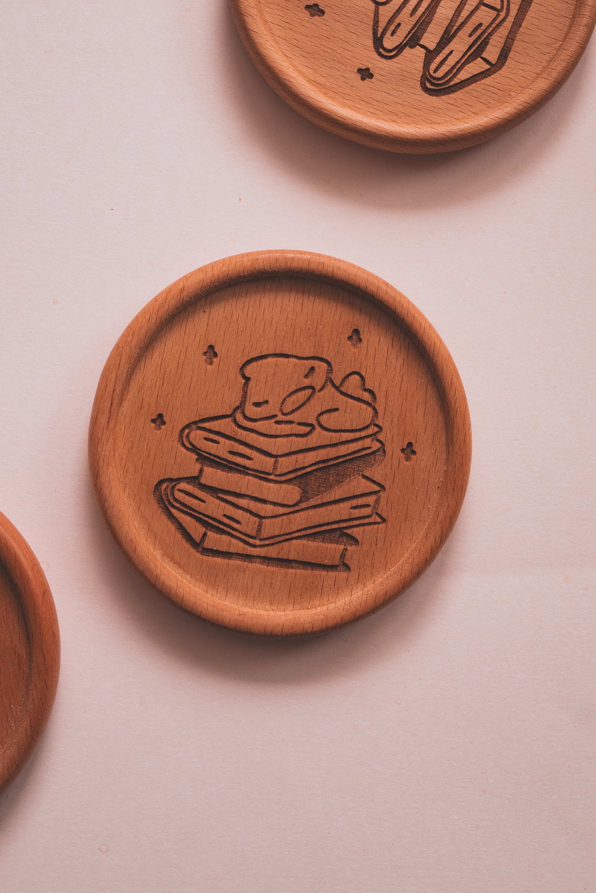 Dessous de verre en bois bamboo, gravé, 9cm.