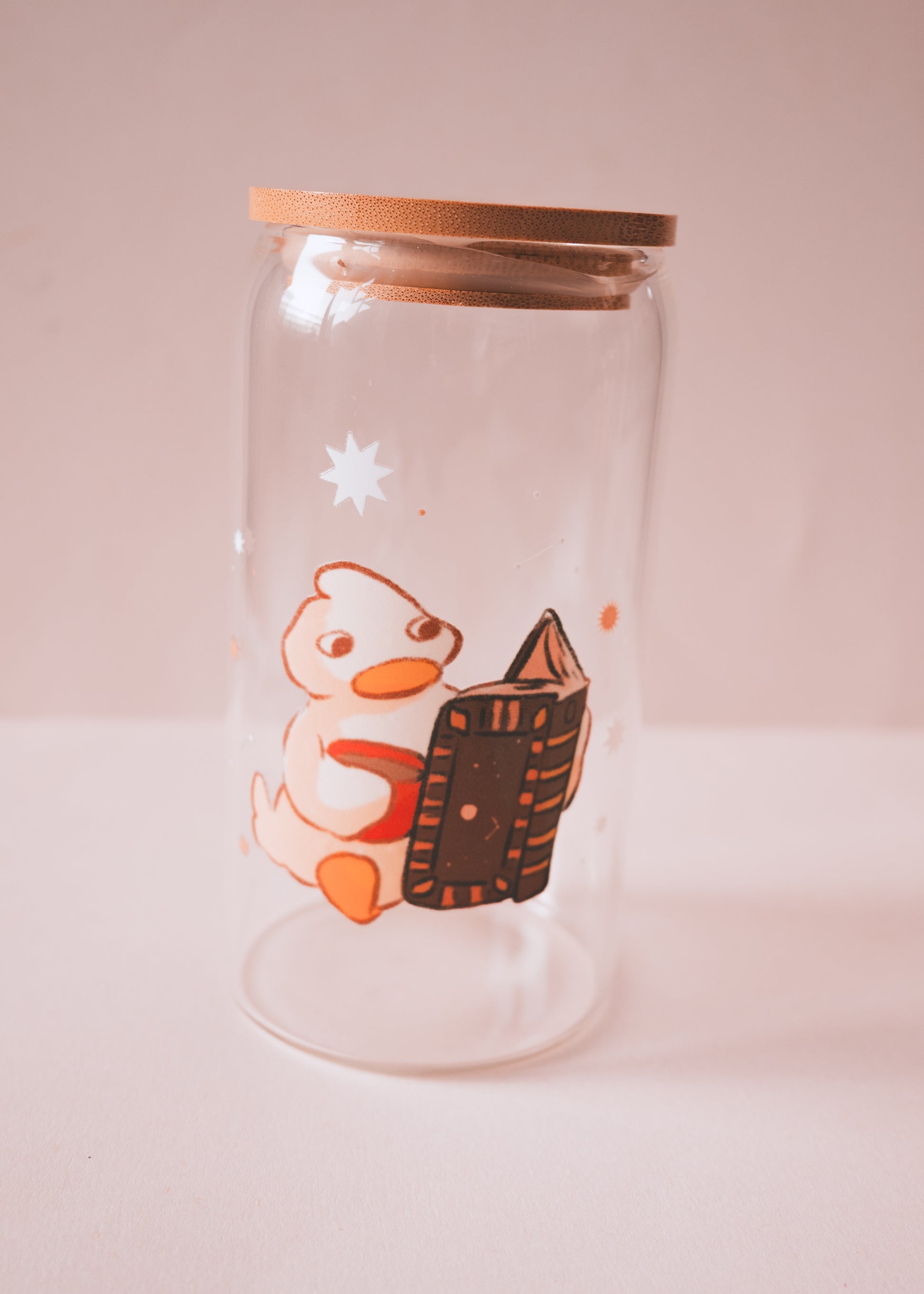 Verre à cocktail/bubble tea avec couvercle en bamboo et paille.
